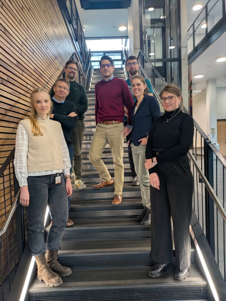Dr. Christoph-Alexander Holst (inIT), Dr. Christoph Ostrau (Hochschule Bielefeld), Prof. Dr. Laura Schulte (Hochschule Bielefeld), Ganna Strathmann (Bechtle Healthcare). Nicht im Bild: Dr. Simon Oberthür (Universität Paderborn), Prof. Dr. Johannes Blömer